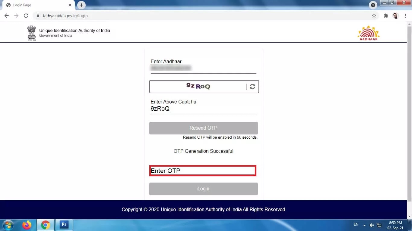 - जब आप Send OTP पर क्लिक करेंगे तो आप के आधार से रजिस्टर्ड मोबाइल पर एक ओटीपी आएगा|