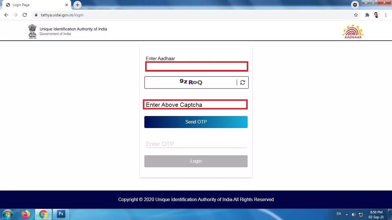 - Login पर क्लिक करने के बाद आपसे आधार कार्ड नंबर मांगेगा|
