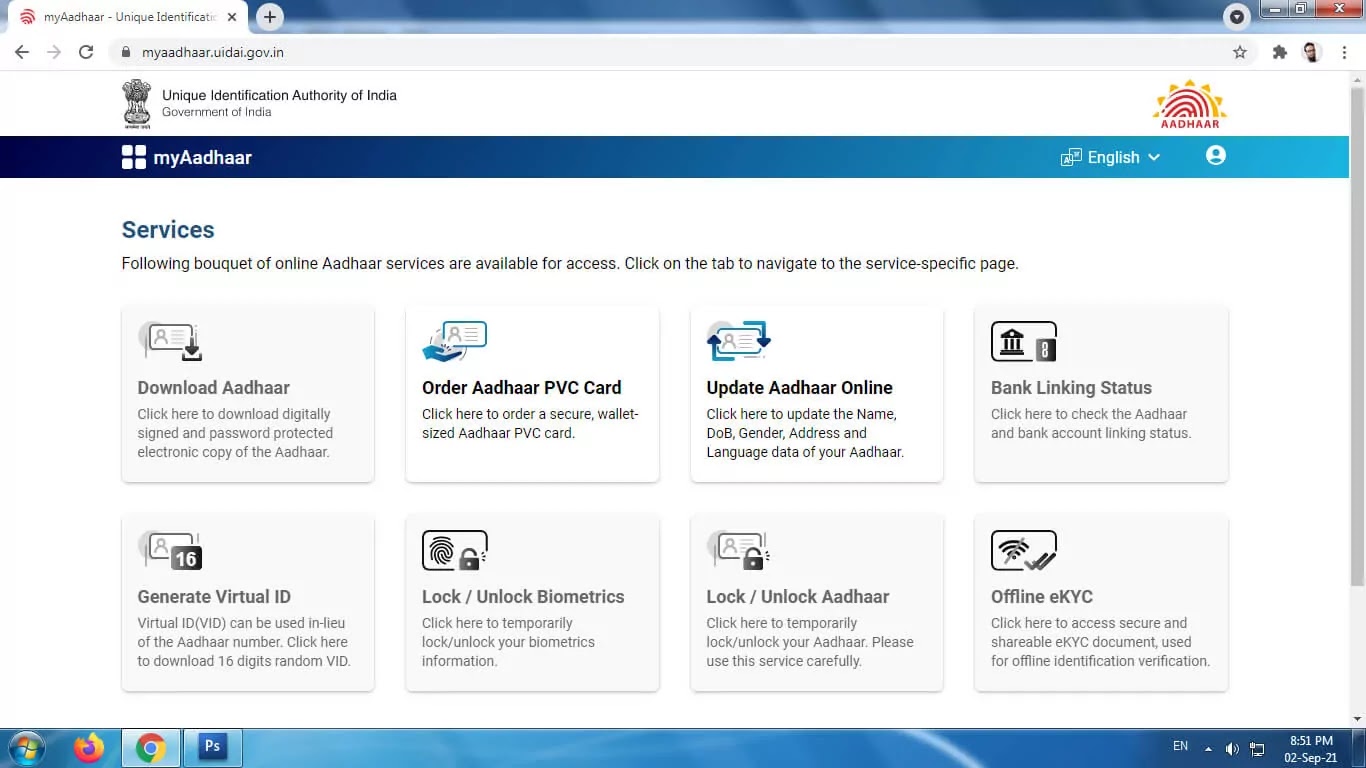 - अभी माई आधार पोर्टल में दो ही सर्विसेज चालू की गई हैं Order Aadhaar PVC Card और Update Aadhaar Online
